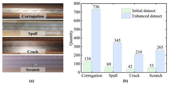 Rail damage dataset: (a) typical rail damage; (b) dataset.