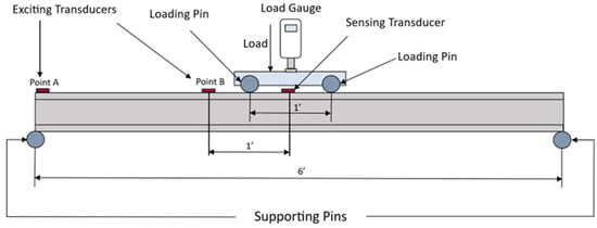 Structural health monitoring (SHM) and non-destructive testing (NDT) are essential for ensuring the safety and longevity of infrastructure such as bridges, buildings, and aerospace vehicles [,]. Critical components such as beams, which serve as key load-bearing elements in many structural systems, require continuous monitoring to maintain their strength, stability, and capacity to safely distribute loads throughout the structure [,,]. The early detection of wear, fatigue, and damage is essential to prevent catastrophic failures and ensure timely maintenance [,,,].