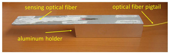 Structural design of prepared optical fiber sensor consisting of a sensing optical fiber and an aluminum support element.