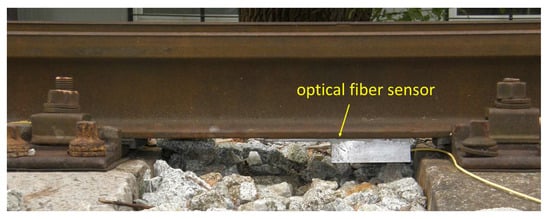 One critical parameter affecting both vehicle and track integrity is the weight of moving trains, particularly freight. Static weighing is rarely performed before trains enter the main infrastructure due to it being time-consuming and expensive. This has spurred interest in dynamic weighing systems, or “weight-in-motion” (WIM) technologies. Early WIM systems utilized strain gauges attached to the rail [12]. Other intrusive methods involved installing sensors like quartz force sensors directly into the track [13]. Monitoring of railway traffic parameters frequently employs piezoelectric sensors. The dynamic loading and vibrations induced by a passing train are effectively detected by piezoelectric sensors integrated into the rails or sleepers, generating a proportional electrical signal [2]. These sensors exhibit high sensitivity to subtle pressure and vibration changes, facilitating comprehensive analysis. A key benefit is their passive operation; they do not require external power, thereby simplifying installation and deployment. However, accurate data acquisition is contingent upon meticulous installation and routine calibration. Moreover, environmental vibrations and noise inherent to railway operations can introduce signal interference, demanding advanced data processing. Interestingly, weight can also be estimated from wheel angular speed and train velocity [14,15]. Optical fiber-based systems are a particularly promising alternative due to their immunity to electromagnetic interference. These sensors can be attached to the side or bottom of the rail [5,16], or even secured with detachable clamps or magnets.