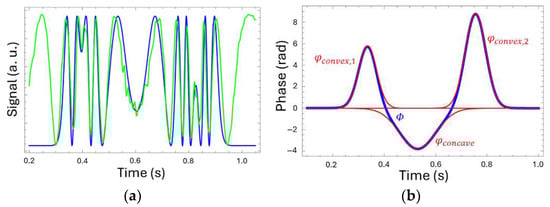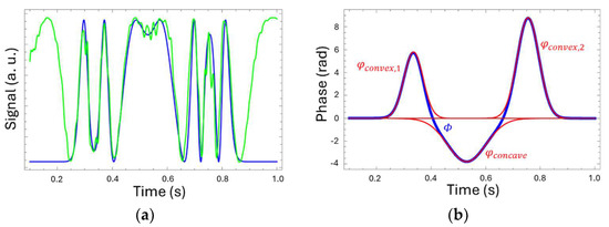An examination of the dependencies presented in Figure 8b, Figure 9b, Figure 10b and Figure 11b reveals that the phase change of the interference signal, quantified by φconcave, exerts a negligible influence on the peak amplitudes of the φconvex,n function. Across all simulations, the contribution of the φconcave functions to the maxima of the φconvex,n functions consistently remained below 1.3% of the maximum φconvex,n value. Consequently, their contribution to the determination of maximum An values was disregarded.