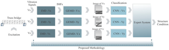 In particular, this work presents an expert system for SHM, designed to assess the condition of a truss bridge based on vibration signal analysis. The system utilizes a triaxial accelerometer to capture structural responses, with each axis independently analyzed using the GEMD-CNNs. The final classification is determined by a set of decision rules, ensuring a structured and reliable evaluation. The approach assumes that structural damage can affect multiple vibration axes; hence, in order to enhance accuracy, the expert system follows these proposed rules: