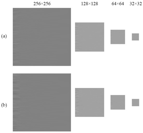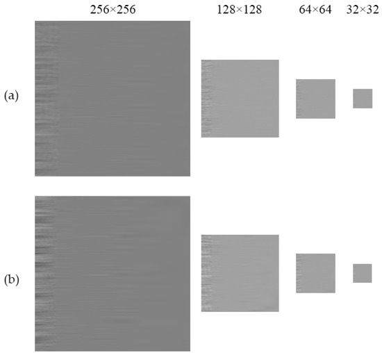Resized low-resolution images of (a) healthy and (b) incipient corrosion conditions along the Vy-axis.