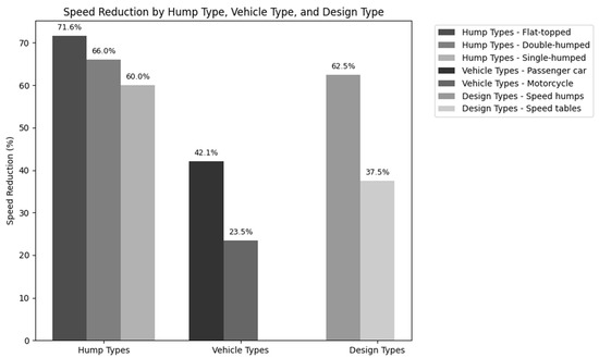 Figure 3 summarizes the percentage reductions in vehicle speed associated with different speed hump types, vehicle types, and design characteristics, based on findings from previous studies [