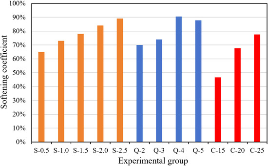 Softening coefficient result by quicklime, stabilizer and cement content dependency.