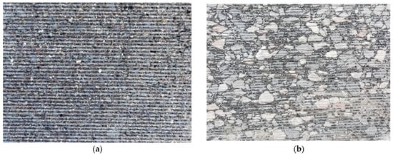 Schematic diagram of grinding grooves on the surface of the rutting plate specimen. (a) Surface of basalt rutting board specimen; (b) surface of limestone rutting board specimen.