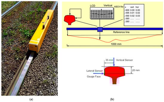 - Bocciolone, M.; Caprioli, A.; Cigada, A.; Collina, A. A measurement system for quick rail inspection and effective track maintenance strategy. Mech. Syst. Signal Process 2007, 21, 1242–1254. [Google Scholar] [CrossRef]