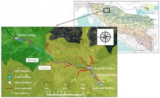 The selected case study area encompasses the Slovenian–Croatian border region along the Sava River basin (Figure 1).