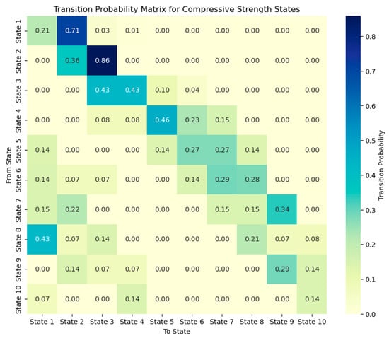 The probability distributions provide insight into the likelihood of transitioning between different compressive strength states (State 1 to State 10) are presented in Figure 2.