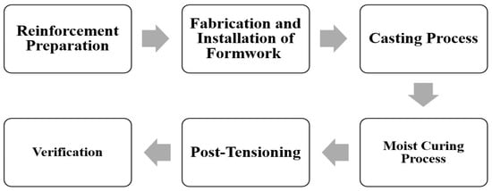 The post-tensioning process for each beam took approximately 15 min. Figure 6 provides the flowchart detailing the preparation process for the test specimens.