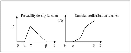 As previously noted, this function is defined by three values: the minimum value α, the maximum value β, and the peak value ϒ represents the mode. Due to the following characteristics, this probability distribution function has been widely applied []: