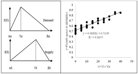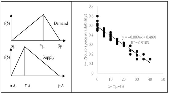 In model formulation, for realism, the dynamic interaction of demand and supply of curbside time slots is treated as a stochastic phenomenon. The probability distribution function choice study reported in Section 3.2 shows that the triangular probability distribution is best suited for this purpose. Many well-known organizations, including the World Bank and the U.S. Federal Highway Administration, are using it in their methodologies. For application, the probability-based model is transformed into a macrosimulation method.