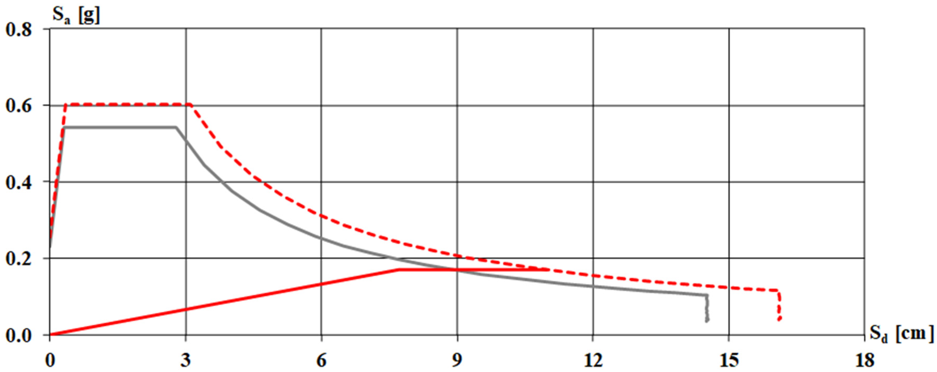 δ. The capacity curve can then be represented in the AD plane by modeling the cathedral frame as a one-degree-of-freedom system, compared with the Acceleration Displacement Response Spectrum of the location considered and the seismic risk index calculated (