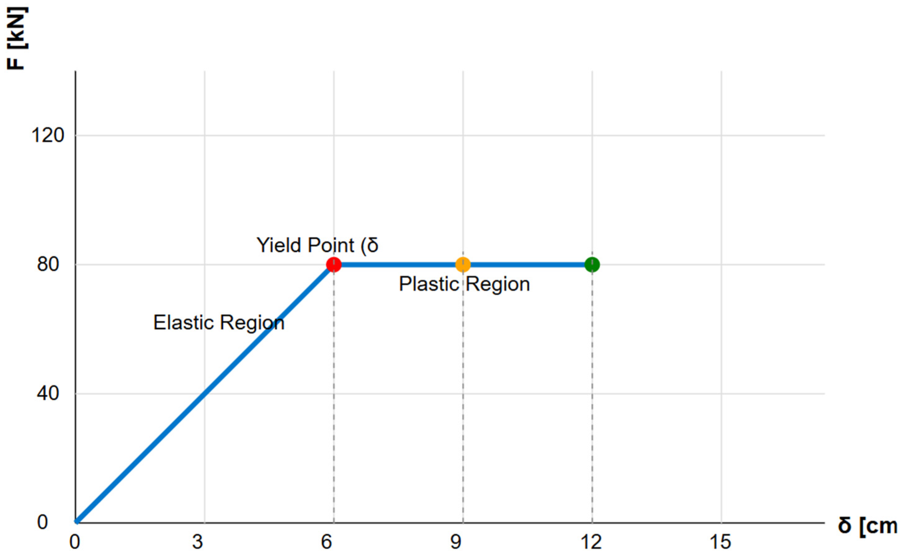 25]. It is well known that the elastic material is characterized by a natural state, such that under the action of external forces, it deforms and returns to its original position once the forces have been removed, regardless of the deformation it experienced. Therefore, the elastic material exhibits reversible deformations, accumulating the effort performed by external actions in the form of elastic potential energy, an energy that it returns ultimately during the unloading phase. However, it is well established that in a structure, loads induce local failures in various points (due to concentrated loads, residual stresses in steel profiles, eccentricity in assembly, local stresses, constraint failures in hyperstatic structures, thermal effects, shrinkage, manufacturing, and assembly imperfections) that exceed the permissible values. Although many of the causes listed above are not included in the structural analysis, there is no resulting failure [