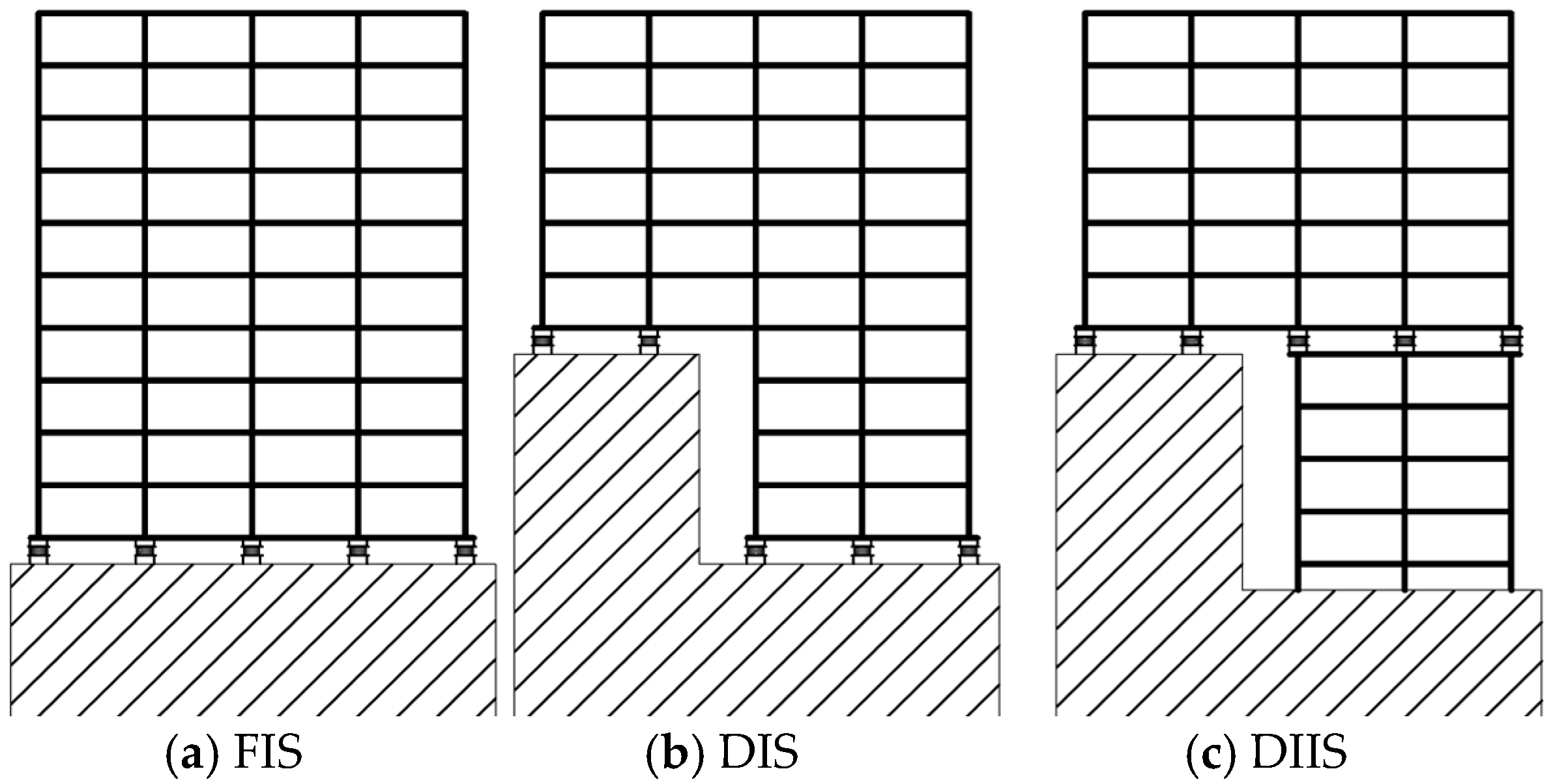 - Ghafar, W.A.; Tao, Z.; Hasan, M.M.; Liang, Y.M. Seismic Analysis of a Hillside Reinforced Concrete Building Isolated by High-Damping Rubber Bearings Using DHI Model Type. In Proceedings of the First International Conference on Engineering Structures, Singapore, 18–20 February 2025; pp. 959–971. [Google Scholar]
