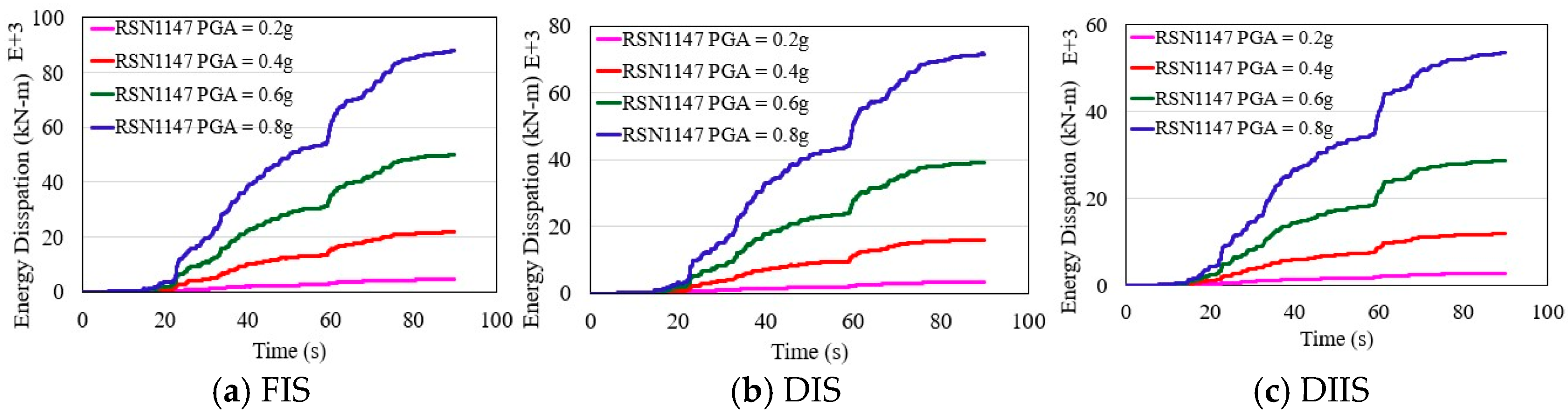 4.1. Hysteresis and Energy Dissipation of the Bearings