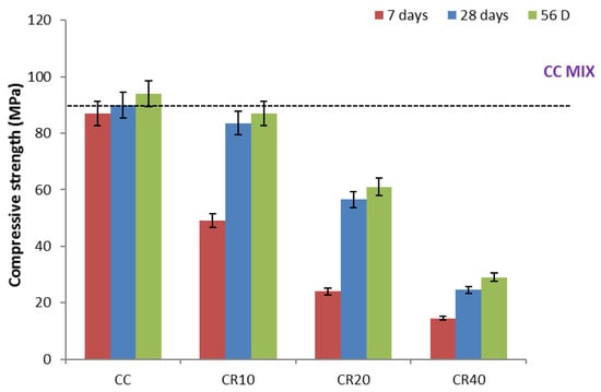 Compressive strength of HPGC mixes with different ratio of CR.