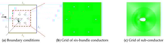 13]. CFD simulations, meanwhile, offer detailed insights into aerodynamic characteristics under various conditions, such as wind speed, attack angle, icing shape, and conductor configurations [