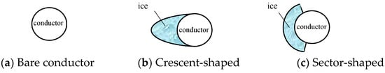 S) included three typical cases: bare conductor, crescent-shaped ice, and sector-shaped ice, which are shown in