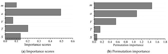 Figure 13b, this approach identifies sub-conductor number (m) and wind attack angle (a) as the two dominant factors, with wind speed (V) ranking third, whereas icing thickness (T) and icing shape (S) contribute relatively less. The difference arises because gain-based importance reflects model-internal splitting criteria, which tend to favor continuous variables with more potential thresholds (such as wind attack angle), whereas permutation importance directly measures the impact of perturbing each feature on prediction accuracy. The consistency between both methods in highlighting wind attack angle and sub-conductor effects confirms their dominant physical role, while the divergence in the relative ranking of other variables underscores the necessity of combining multiple importance measures. This joint analysis not only reduces potential bias associated with a single metric but also provides a more comprehensive understanding of the aerodynamic drivers of iced bundled conductors.