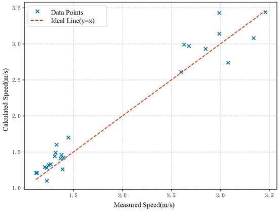 After excluding four laser measurement outliers (Points 10, 11, 39, 40), 36 valid data points are retained as shown in Figure 8. Subsequent analysis yielded a root mean square error (RMSE) of 1.945 and coefficient of determination (R2) of 0.945 between and the measured AcD. This indicates that the monocular distance estimation algorithm can effectively predict the target distance, although there is still a small error of 5.5%.