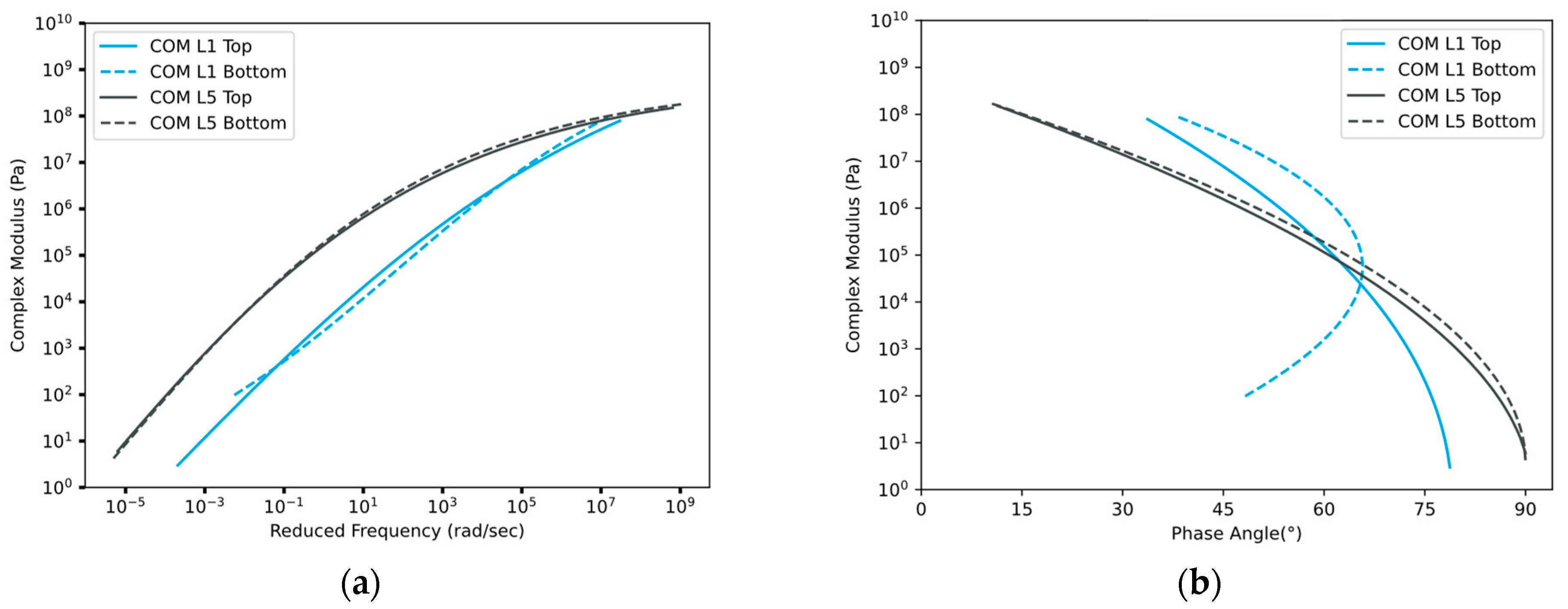 - Rowe, G.M.; Sharrock, M.J.; Bouldin, M.G.; DongreÂ, R.N. Advanced Techniques to Develop Asphalt Master Curves from the Bending Beam Rheometer. In Proceedings of the 10th International Conference on Asphalt Pavements (ISAP), Québec City, QC, Canada, 12–18 August 2001. [Google Scholar]