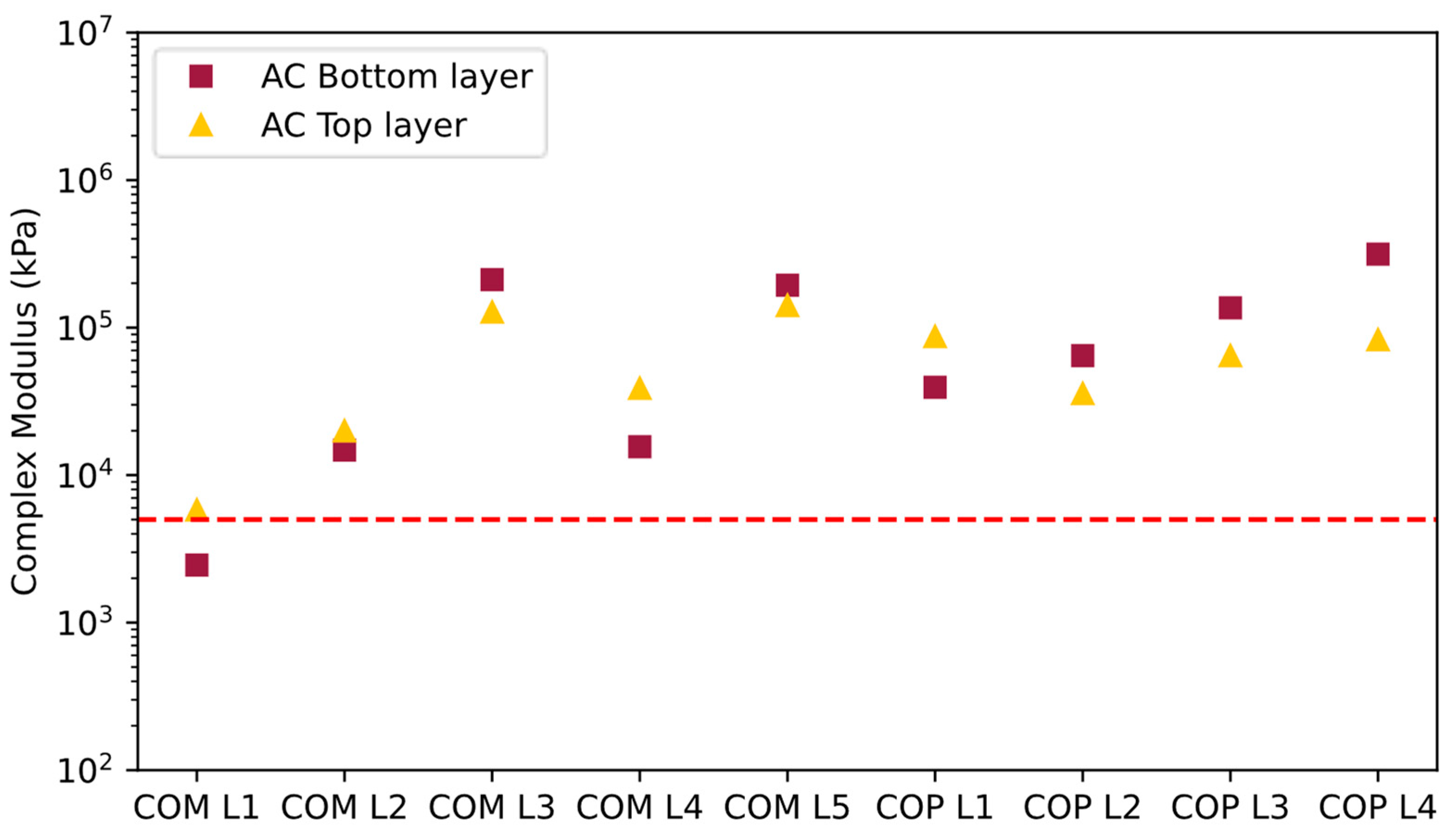 - Christensen, D.W.; Tran, N. National Cooperative Highway Research Program; Transportation Research Board; National Academies of Sciences, Engineering, and Medicine. Relationships Between the Fatigue Properties of Asphalt Binders and the Fatigue Performance of Asphalt Mixtures; Transportation Research Board: Washington, DC, USA, 2021; p. 26302. ISBN 978-0-309-09342-2. [Google Scholar]