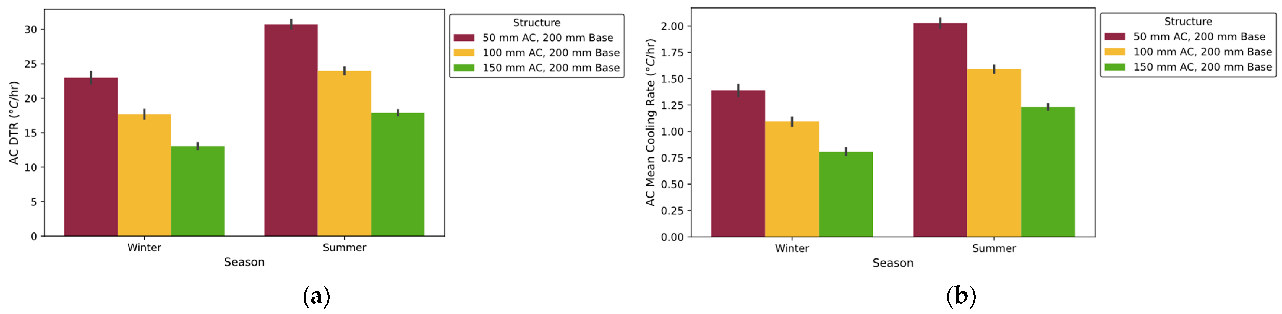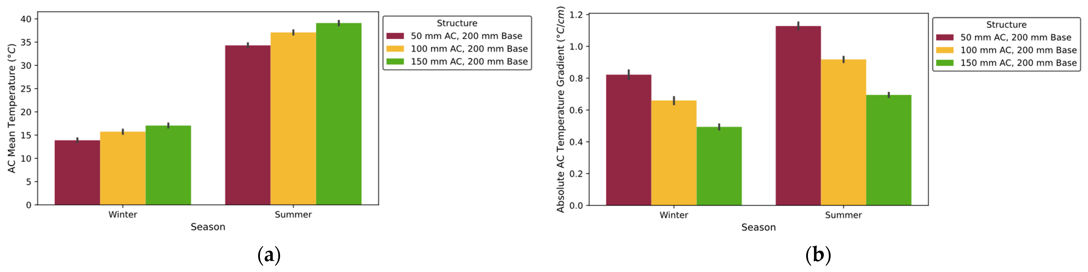 6.3.2. Effect of Pavement Structure on Pavement Temperature Profiles