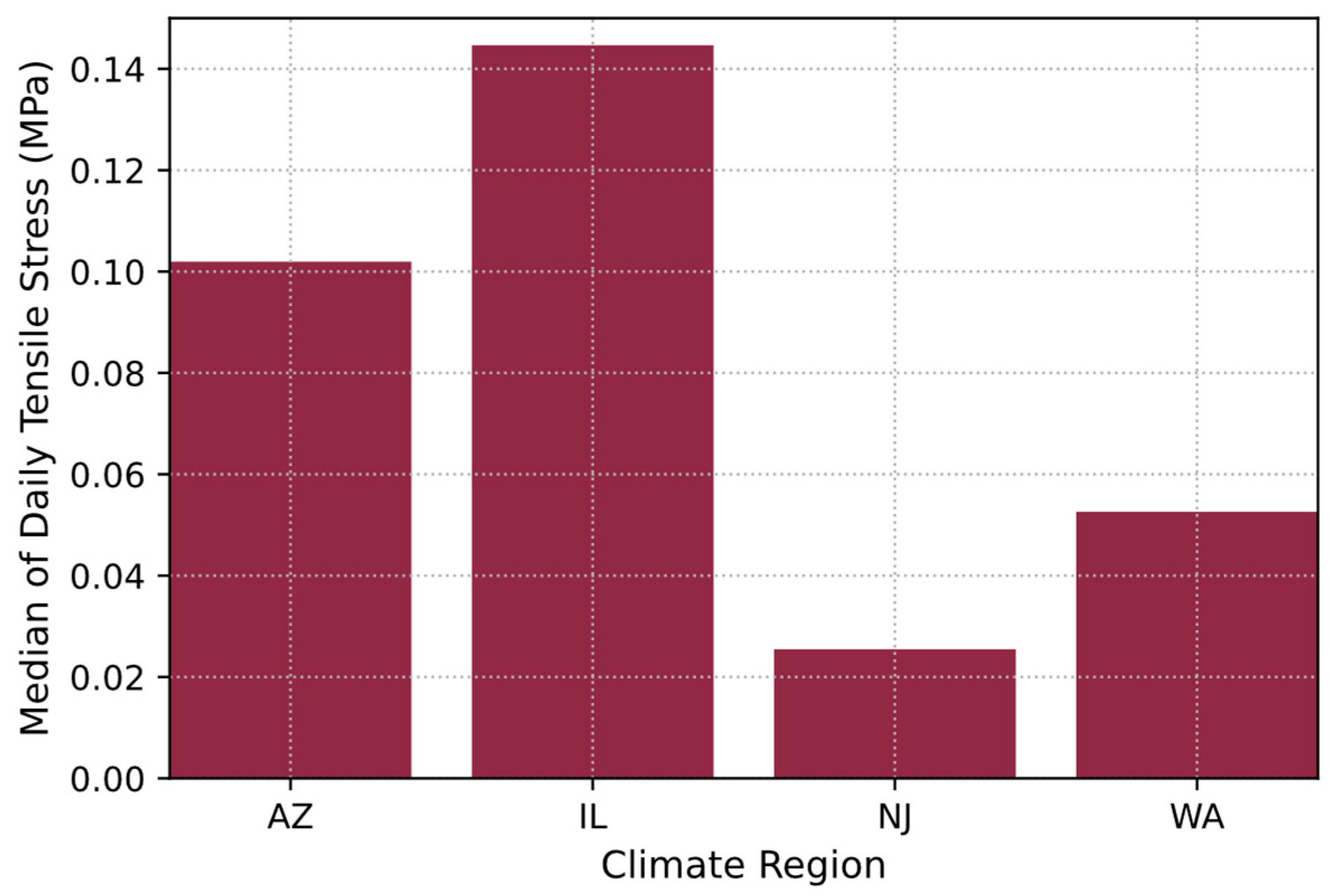 6.2. Predicting Thermal Stresses in the Pavement Sections