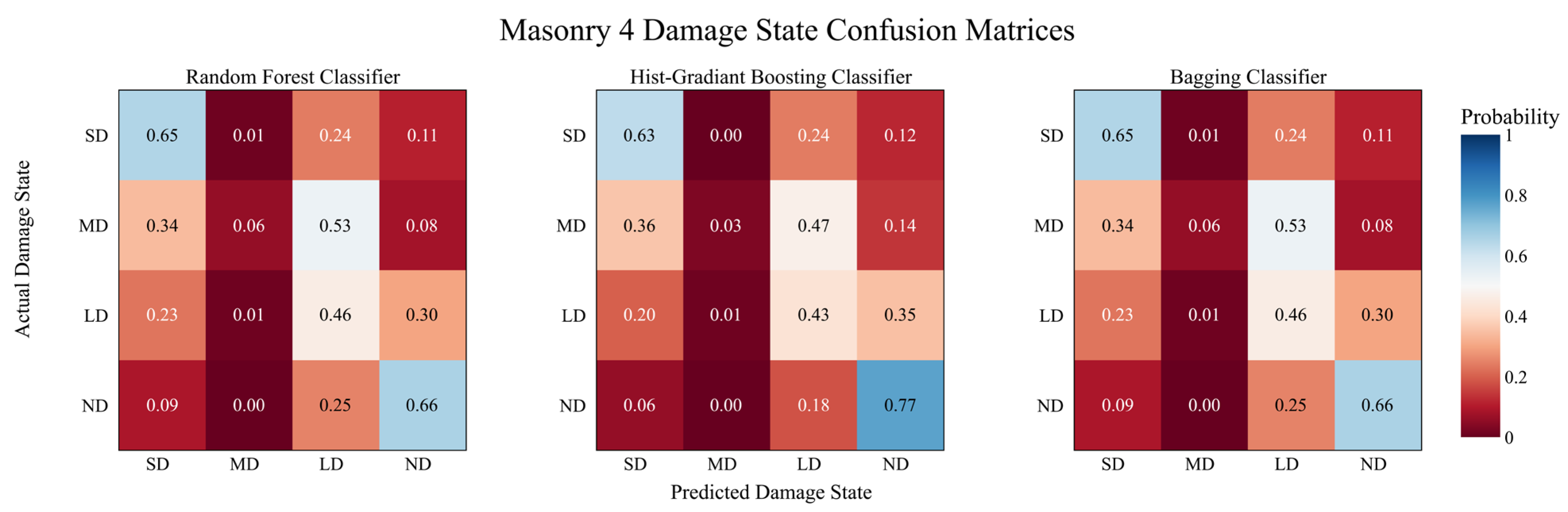 Masonry buildings four Damage Classes: For the four-class damage state of masonry structures, the confusion matrix (