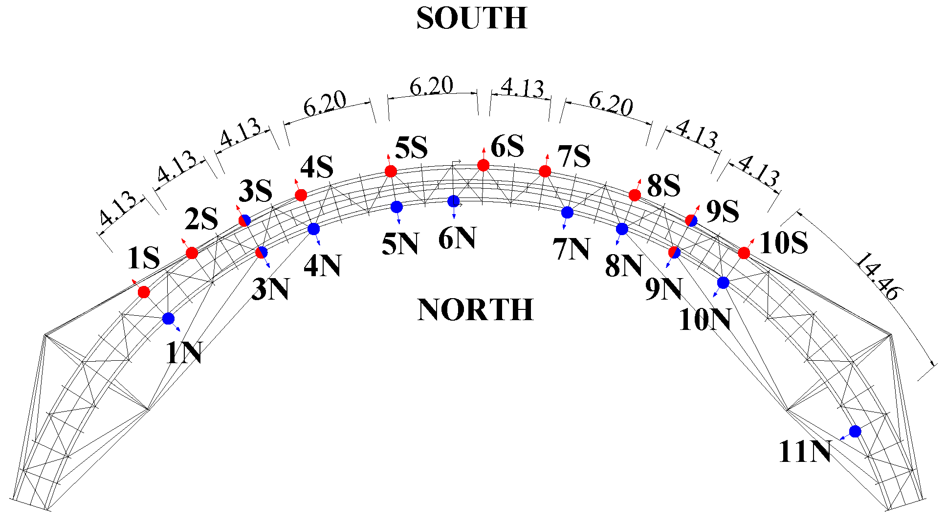 Figure 8). Therefore, bending-only simulations are not over-conservative in an absolute sense, but they tend to overestimate the structural response at one extremity (north N) and underestimate it at the other (south S).
