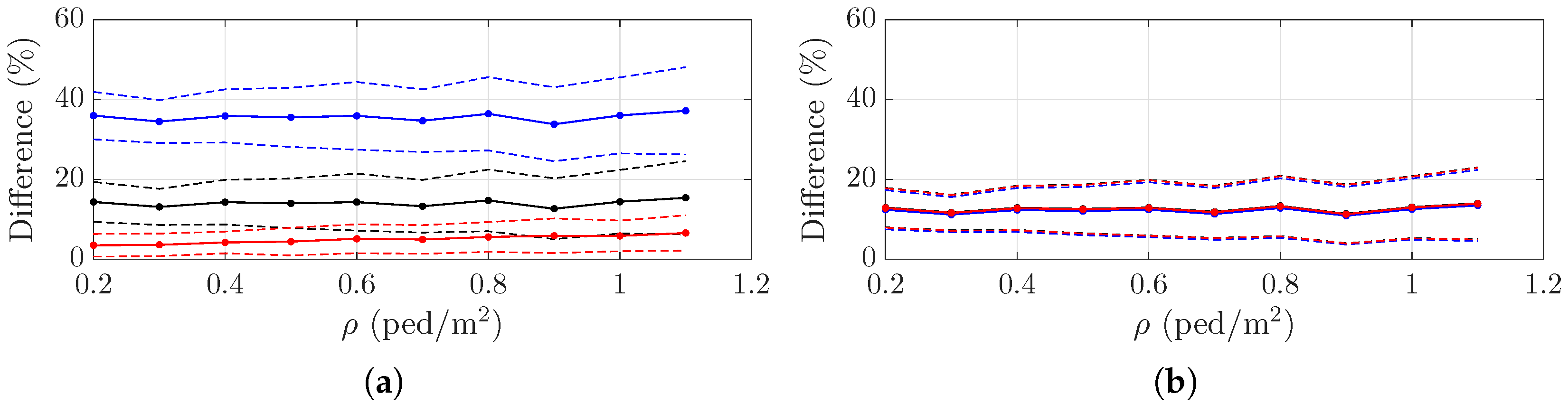 Figure 10c. Notably, the average difference decreases with increasing density, as denser crowds more closely approximate a uniform distribution. The standard deviation of