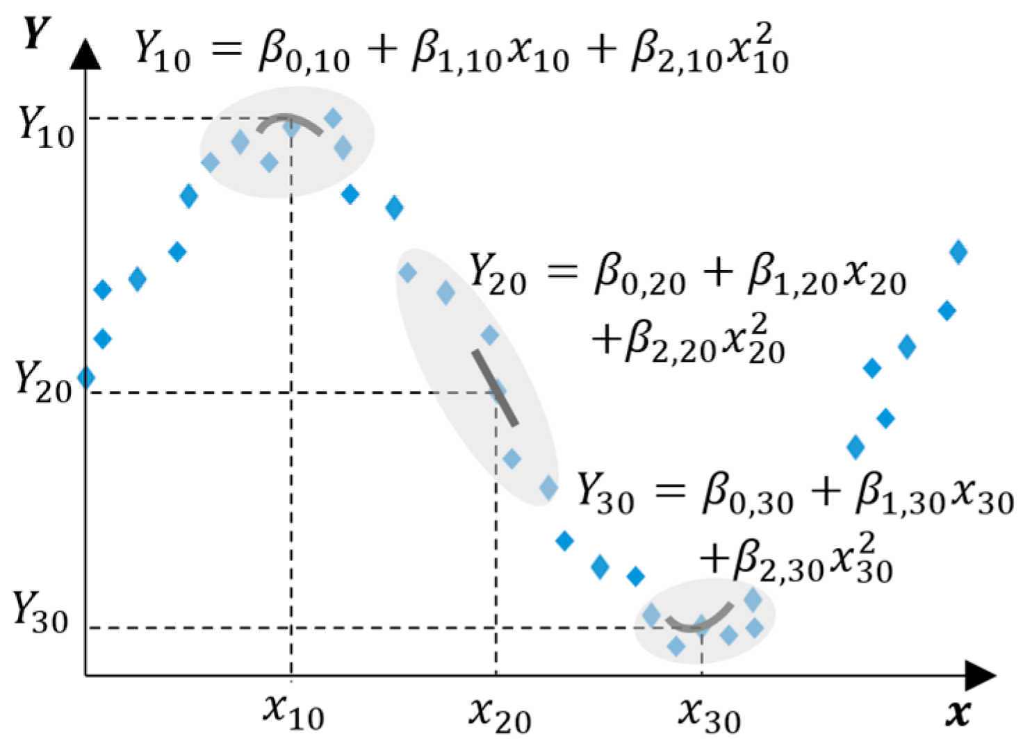 where f(.) is a quadratically integrable function. In the LOESS model, this equation may be rewritten as [59]:
