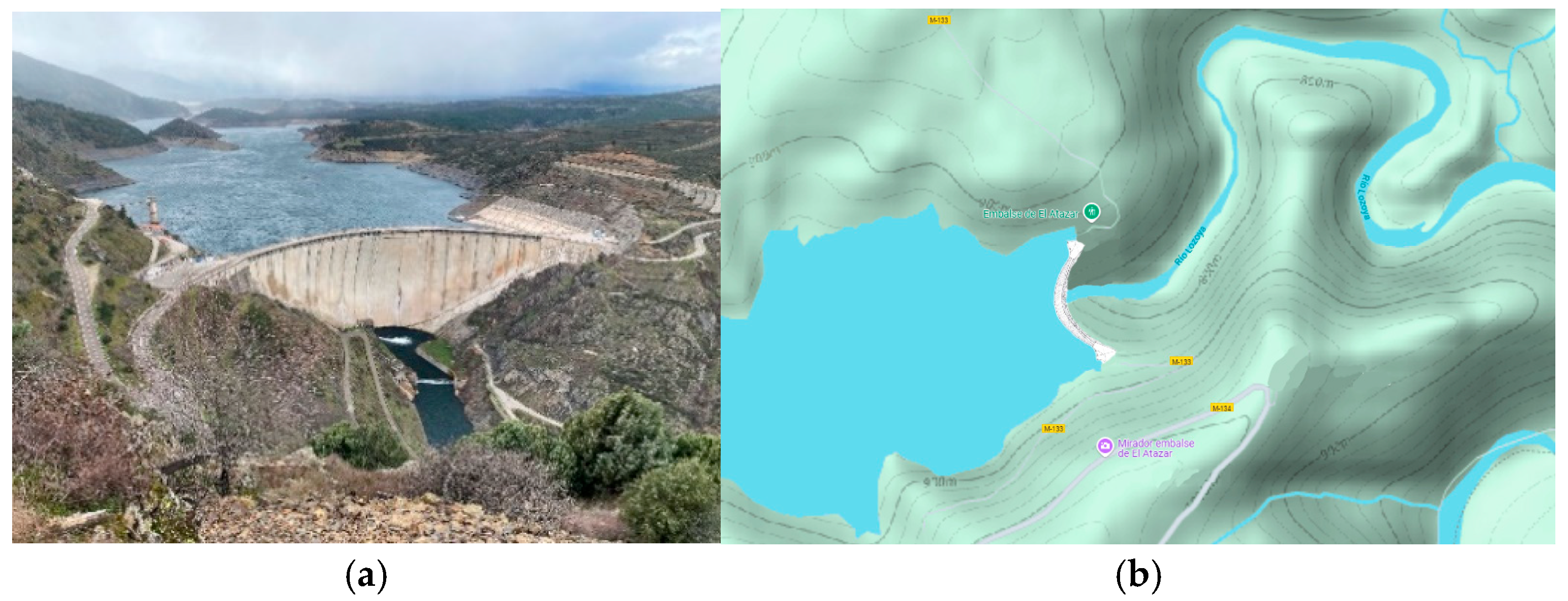 Figure 4. El Atazar dam: (a) downstream view and (b) layout plan.