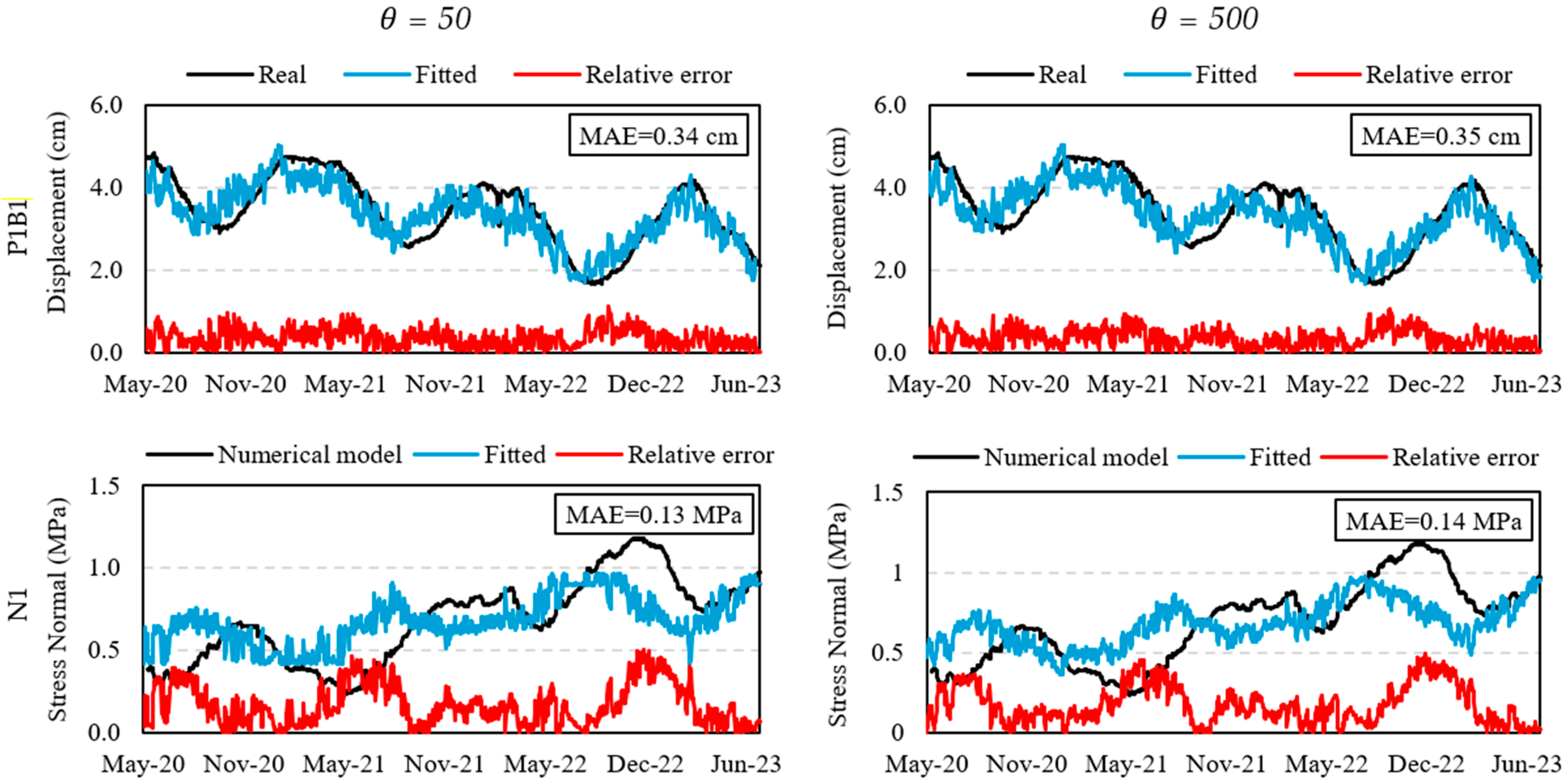 • Since training data is derived from the numerical model, the methodology can predict multiple response types, including deformation, stress, and joint opening. In this study, stress and deformation are selected to demonstrate the applicability of the methodology.