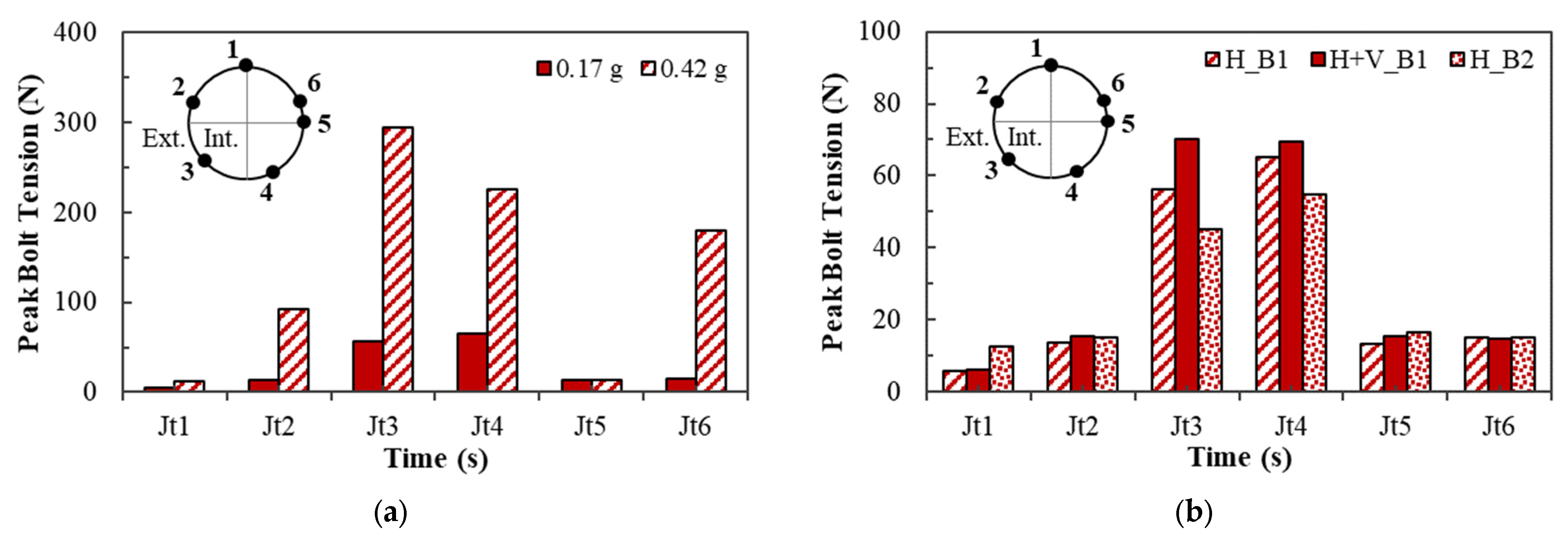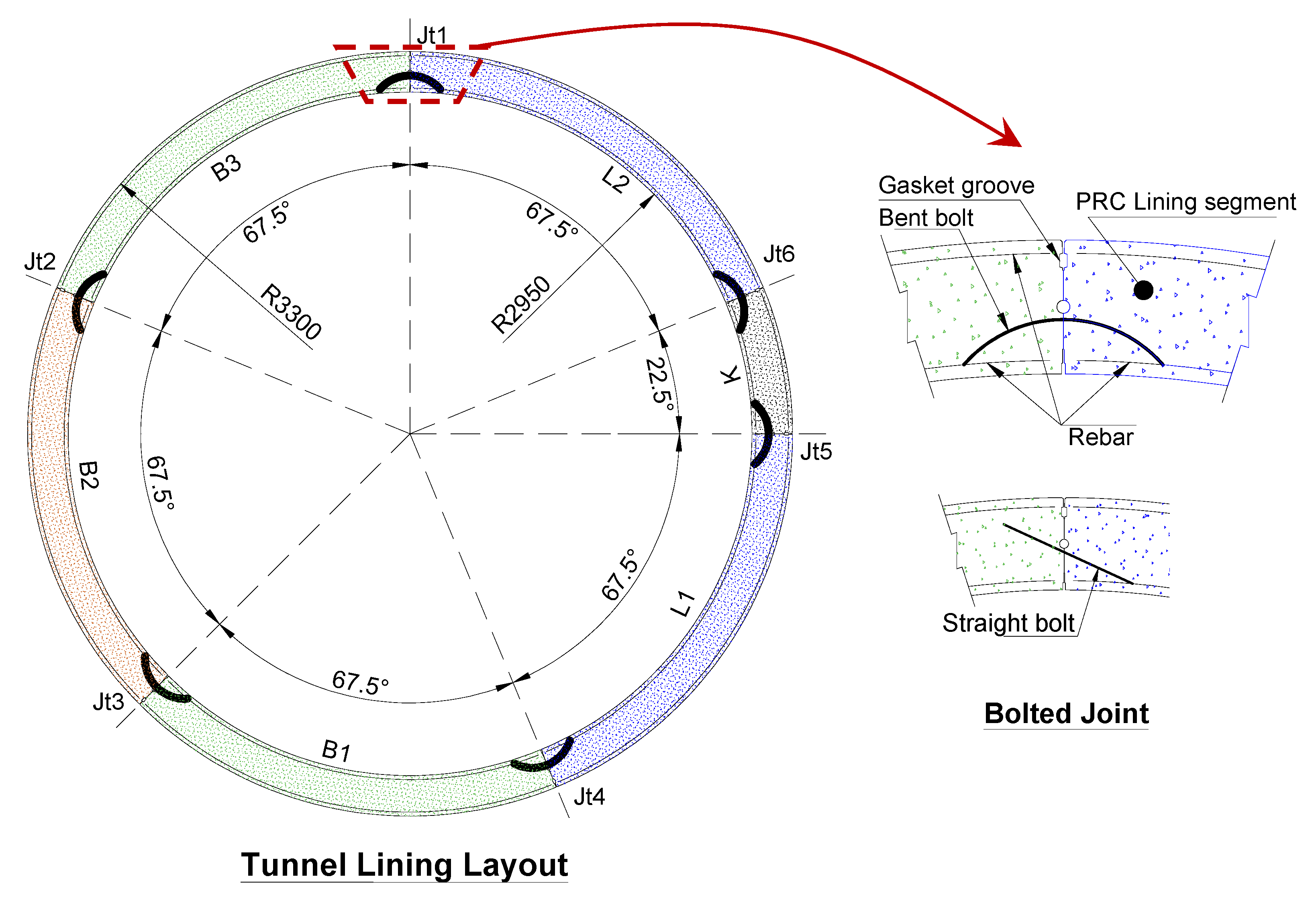 - Bolt-type effects on the segmental tunnel lining and joint behavior are inconclusive. For example, whereas the bolt tension responses were lower for the bent and horizontally placed bolts under GM2, those under GM1 and GM3 demonstrated no noticeable difference for the bent and horizontally placed, and straight and inclined bolts.