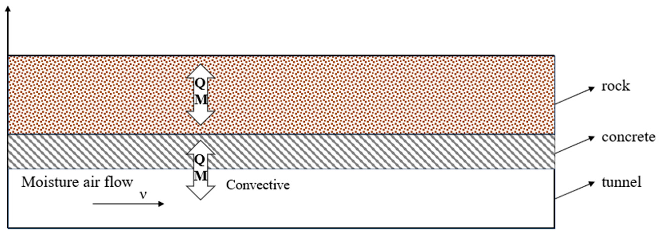 - The moisture content in the surrounding rock exists only in the gaseous and liquid phases, and phase change to ice is not considered;
