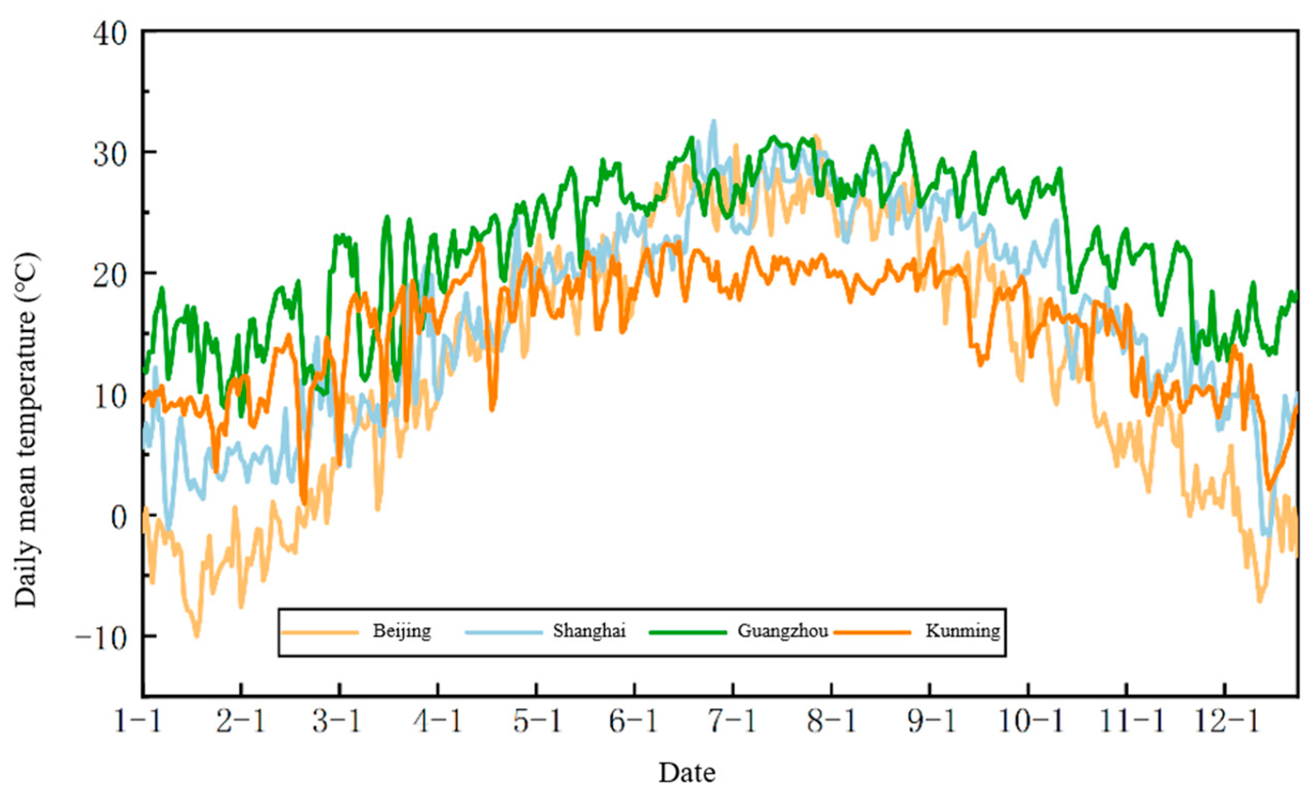 4.1. Climatic Characteristics of Typical Cities in Different Climatic Regions