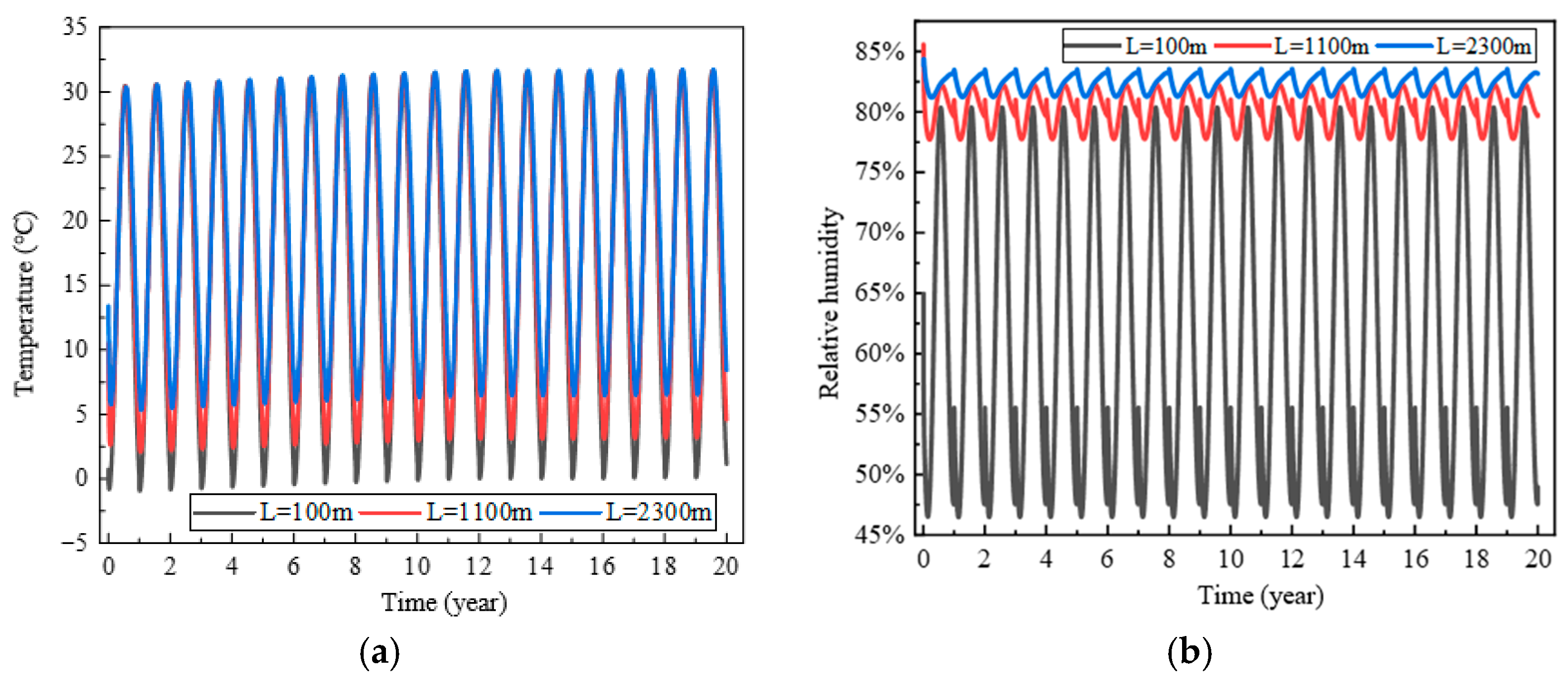 - The surrounding rock is located within the geothermal zone of constant temperature, and seasonal variations in atmospheric temperature are not considered in the initial temperature distribution.