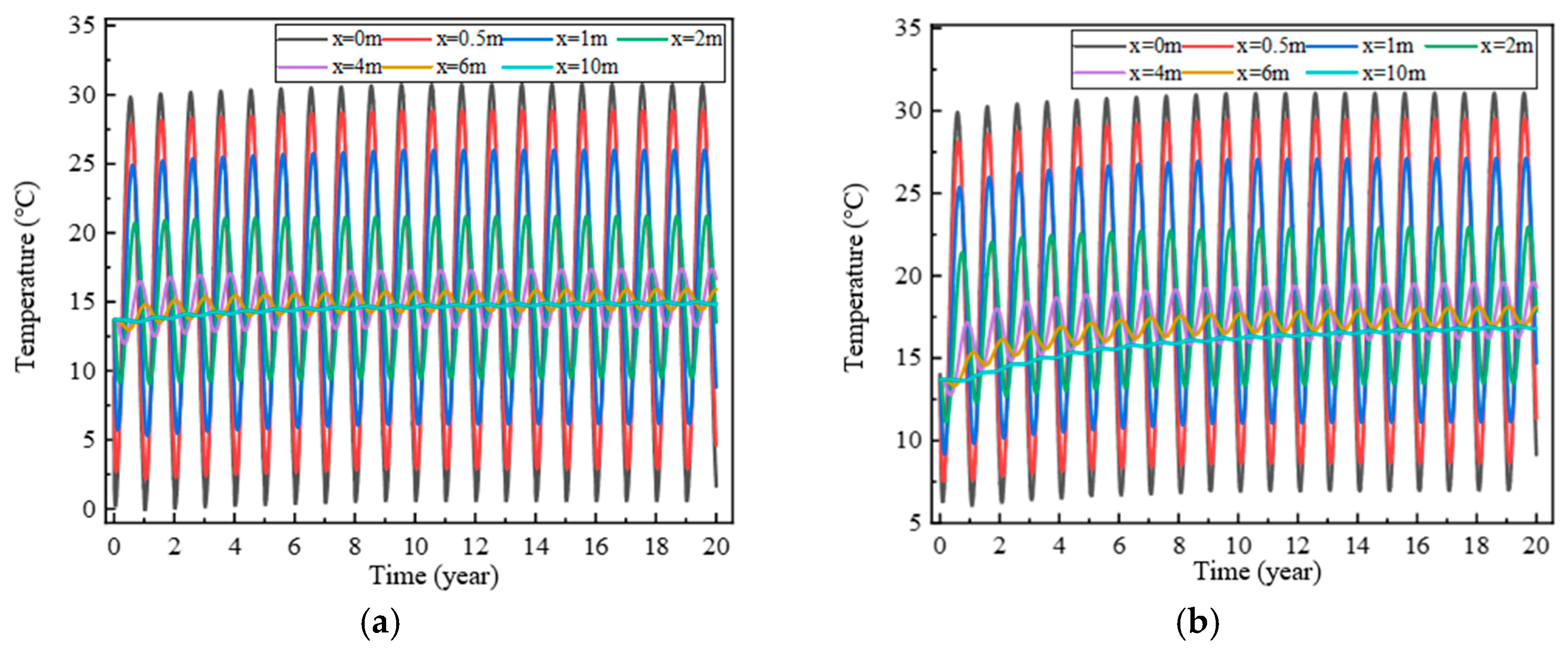 - Song, H.; Li, J.; Yu, Y.; Chen, Q. Research on the Influence of Subway Tunnel Depth on Heat Storage Characteristics of the Surrounding Soil Mass. Appl. Sci. 2023, 13, 9534. [Google Scholar] [CrossRef]