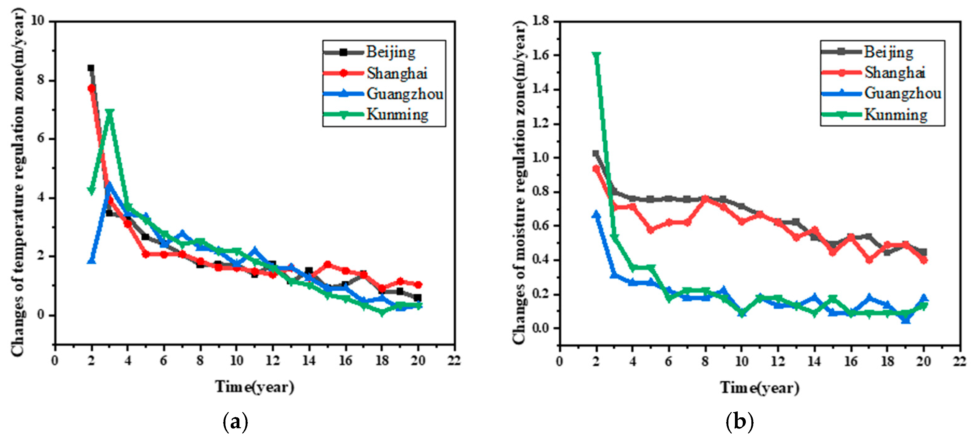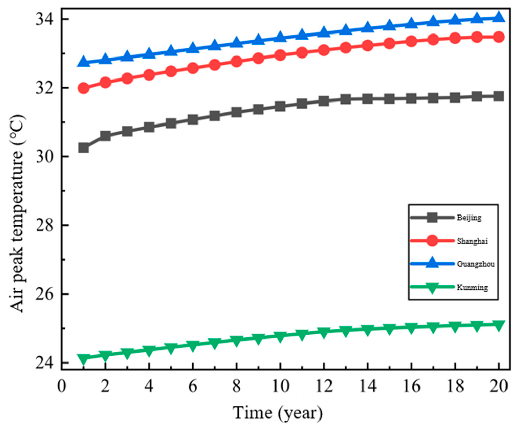 4.3. Interannual Variation in Thermal and Humid Environment of Metro Tunnels in Other Typical Cities