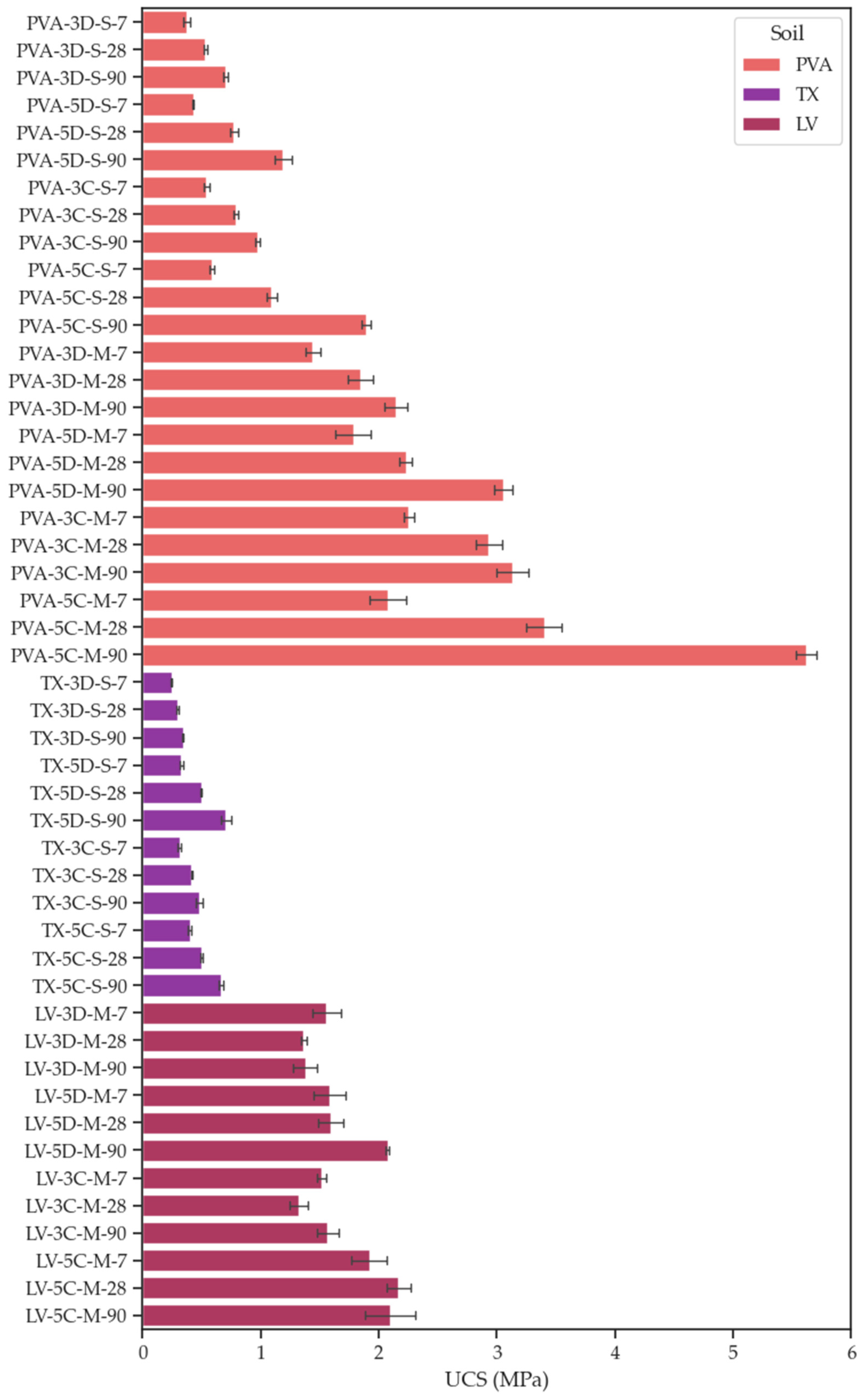 3.1. Unconfined Compressive Strength