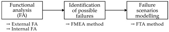 Functional analysis (FA) aims to describe a studied system in structural and functional terms. It is used as a foundation for risk analysis [35]. It can be divided into two steps: external FA and internal FA [36].