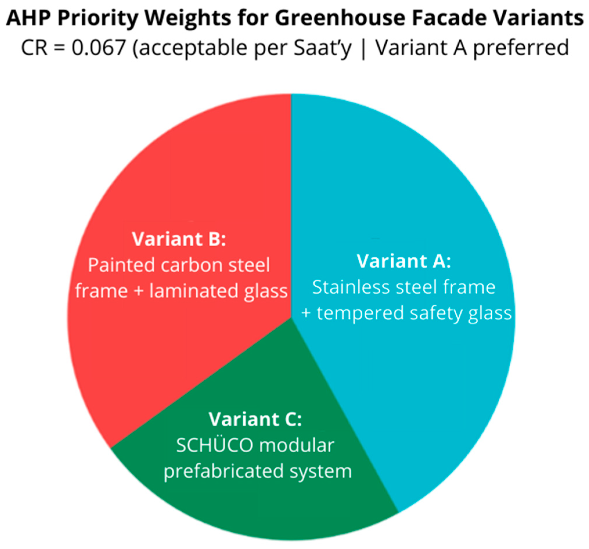 This decision does not contradict the AHP methodology. In contrast, the sensitivity analysis confirms that AHP functions as a decision-support tool that flexibly responds to changes in weighting assumptions aligned with the strategic objectives of the project.