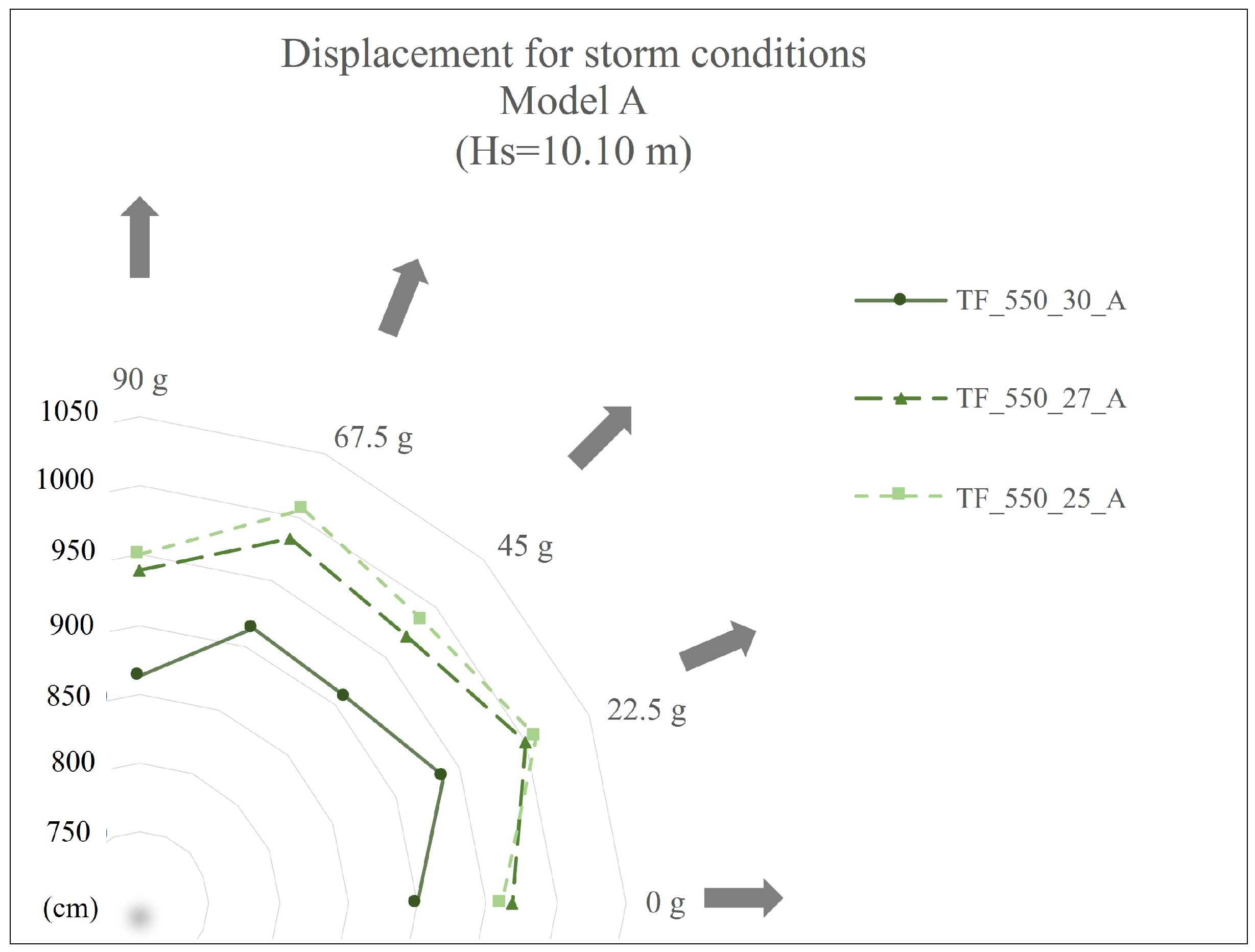 Figure 10 show the maximum displacements for different peak periods (Tp) for model TF-550-25-A.