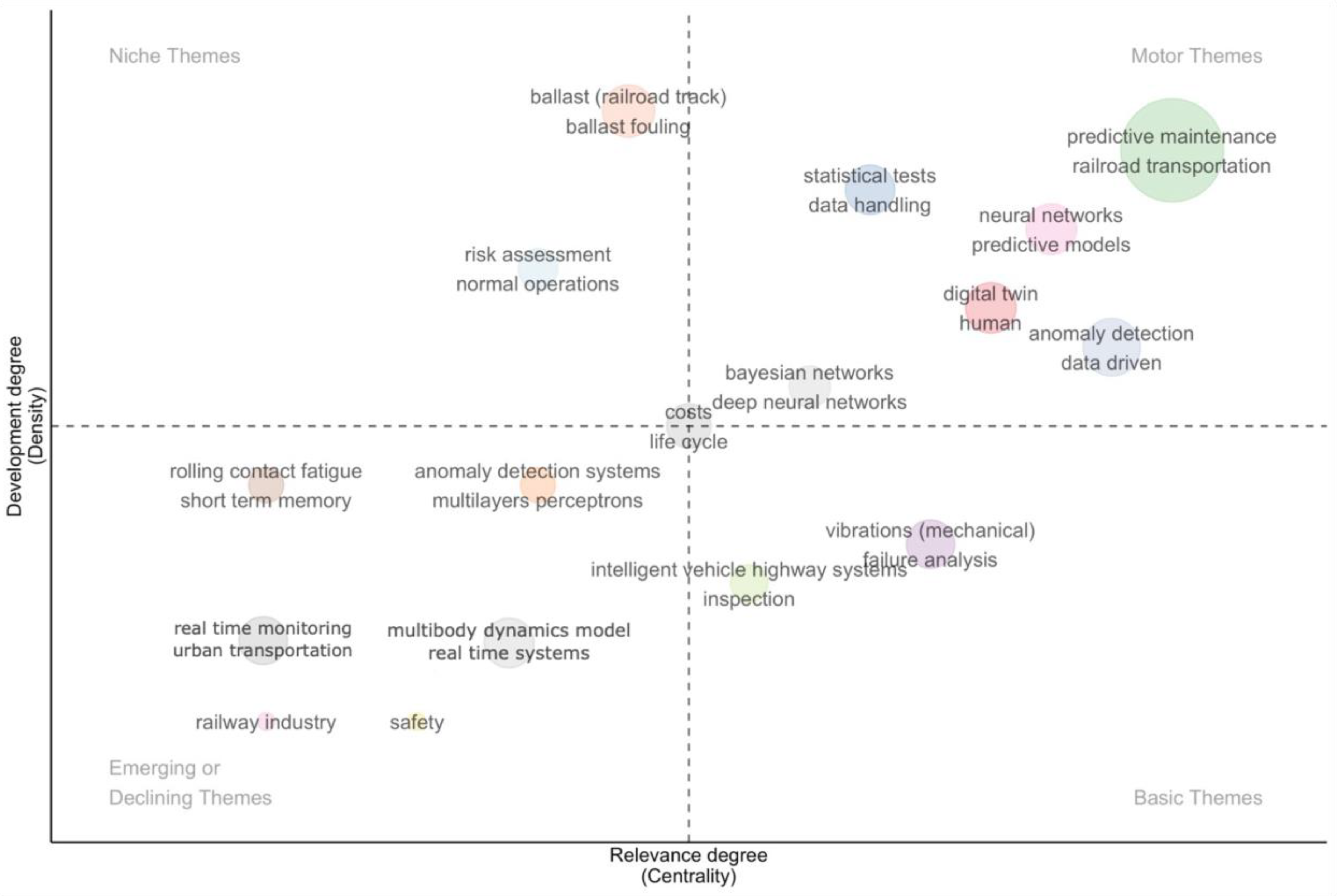 - Domain Relevance: Papers that were found to be unrelated to the railway sector or those lacking a clear maintenance dimension were discarded.