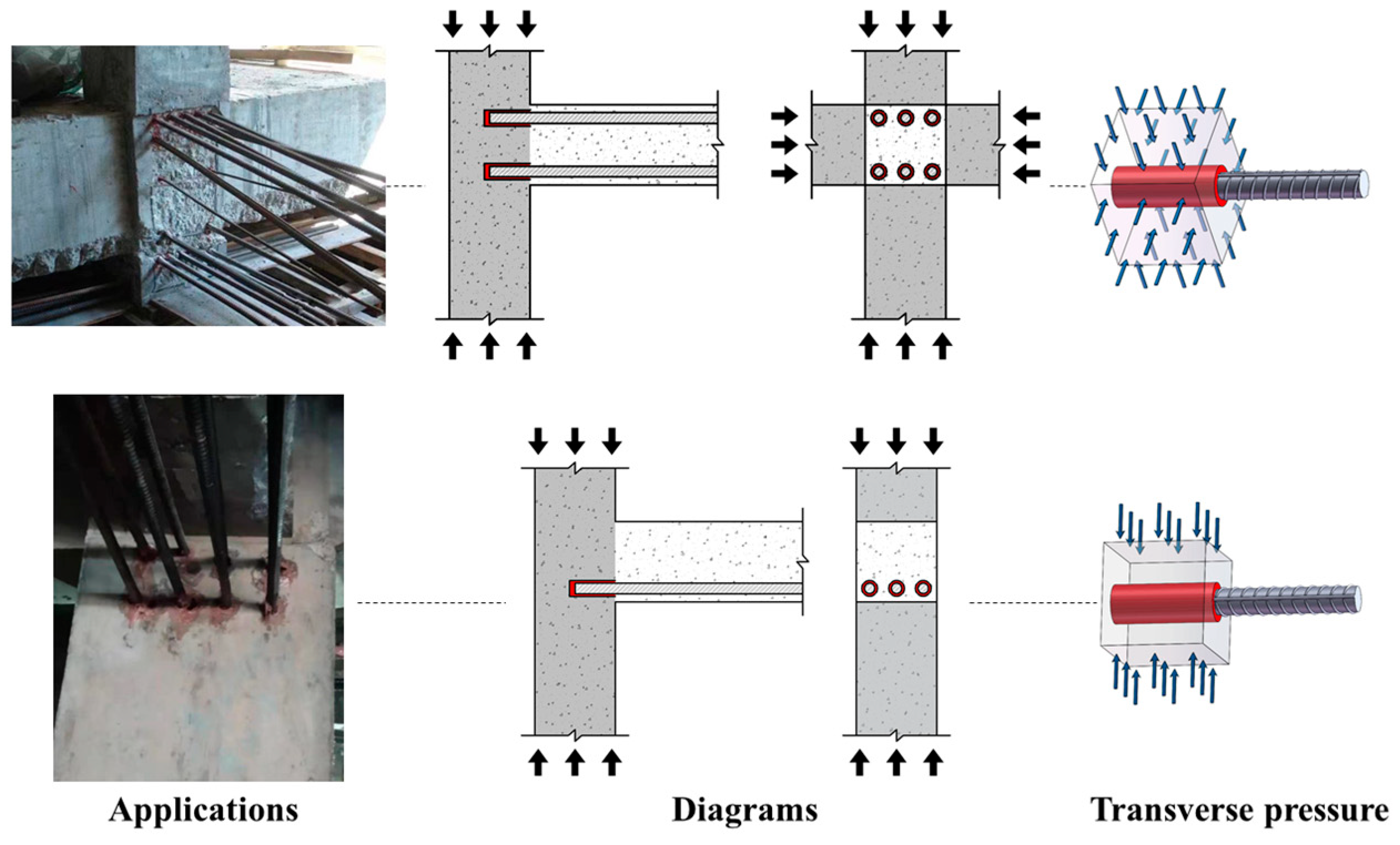 - Gao, Q. Study on Tensile Performance and Confinement Quantification of Post-Installed Rebars Under Transverse Pressure Conditions. Master’s Thesis, Chongqing Jiaotong University, Chongqing, China, 2025. (In Chinese) [Google Scholar]