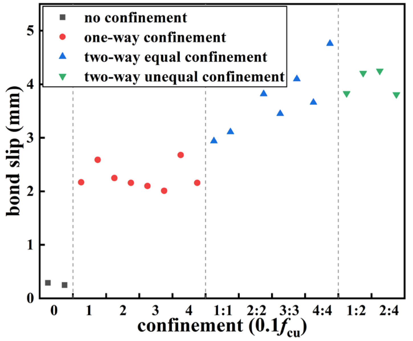 | Group | Confinement Condition | Specimen Number | Pu (kN) | τu (MPa) | s0 (mm) | Failure Mode |