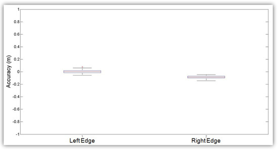 Box plot for the accuracy values of the extracted left and right edges in the road section.