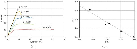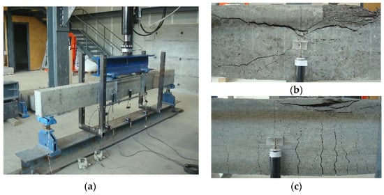 16]. For this purpose, three sets of tests were carried out, one for each considered parameter: tensile reinforcement ratio, transversal reinforcement ratio, and concrete’s compressive strength. Thirteen beams with 3000 mm length, 120 mm width, and 270 mm height were tested. The load was applied through a hydraulic servo-actuator using displacement control and a constant speed of 0.01 mm/s (